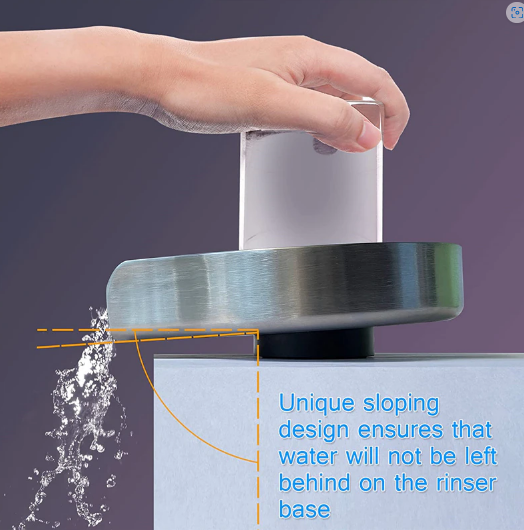 The special base design allows all the water to flow out of the door and does not remain on the base tray.